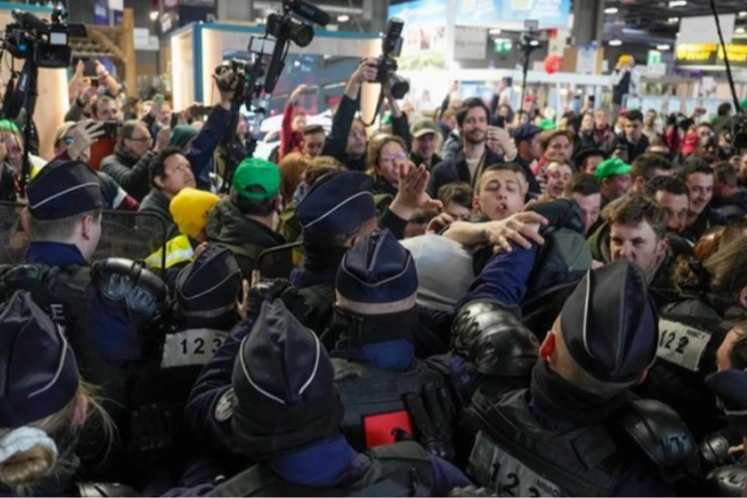 Fransız çiftçilerin tarım politikalarına karşı isyanı sürüyor. Fransız çiftçiler, Cumhurbaşkanı Emmanuel Macron'un başkent Paris'te katıldığı Uluslararası Tarım Fuarı'na açılış öncesi baskın gerçekleştirdi. Barikatları aşmayı başaran çiftçilerle Fransız polisi karşı kaşıya geldi. "Macron istifa", "Burası bizim evimiz" sloganları atan çiftçilere polis müdahale etti, iki taraf arasında arbede çıktı. Bu sırada çiftçi sendikaları liderleriyle görüşen Macron, gazetecilere açıklamalarda bulundu.