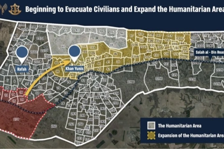 IDF'ten yapılan açıklamada, "IDF, Gazze'ye akan yardımın artan seviyelerini karşılamak için Al-Mawasi'deki insani yardım alanını genişletti. Bu genişletilmiş insani yardım alanı sahra hastaneleri, çadırlar ve artan miktarda gıda, su, ilaç ve ek malzemeleri içermektedir. Hükümetin onayı doğrultusunda, devam etmekte olan bir durum değerlendirmesi, Refah'ın doğusunda belirlenen bölgelerdeki sivillerin kademeli olarak insani yardım bölgesine taşınmasına rehberlik edecektir" denildi.