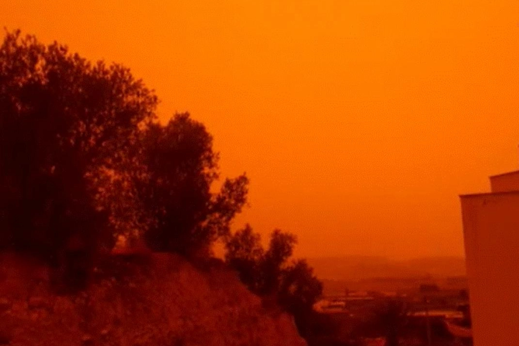 Sahra Çölü'nden gelen toz fırtınası, İspanya'nın güneydoğusundaki Murcia bölgesinde hayatı olumsuz etkiledi.