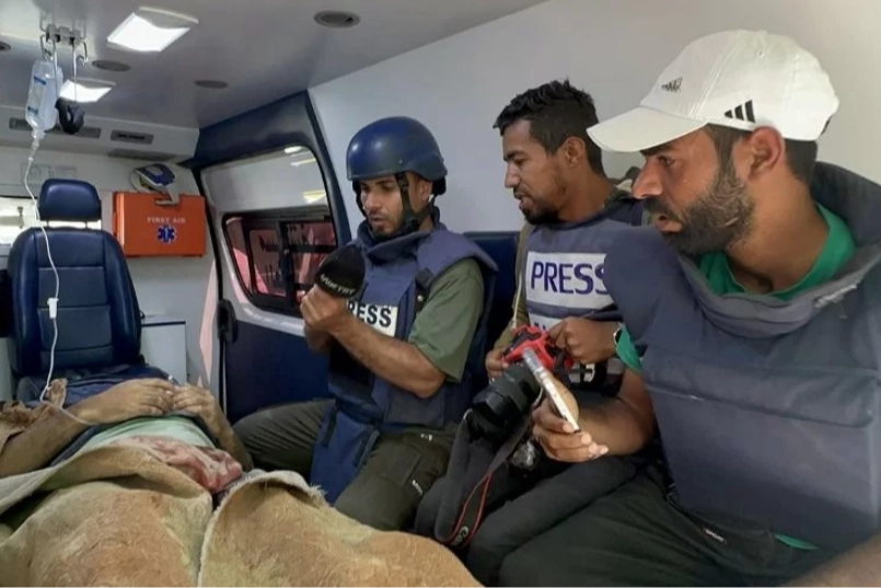 İsrail ordusunun Gazze Şeridi'ndeki Nusayrat Mülteci Kampı'nı bombalaması sonucu aralarında TRT Arapça ekibinin de bulunduğu bir grup gazeteci yaralandı.