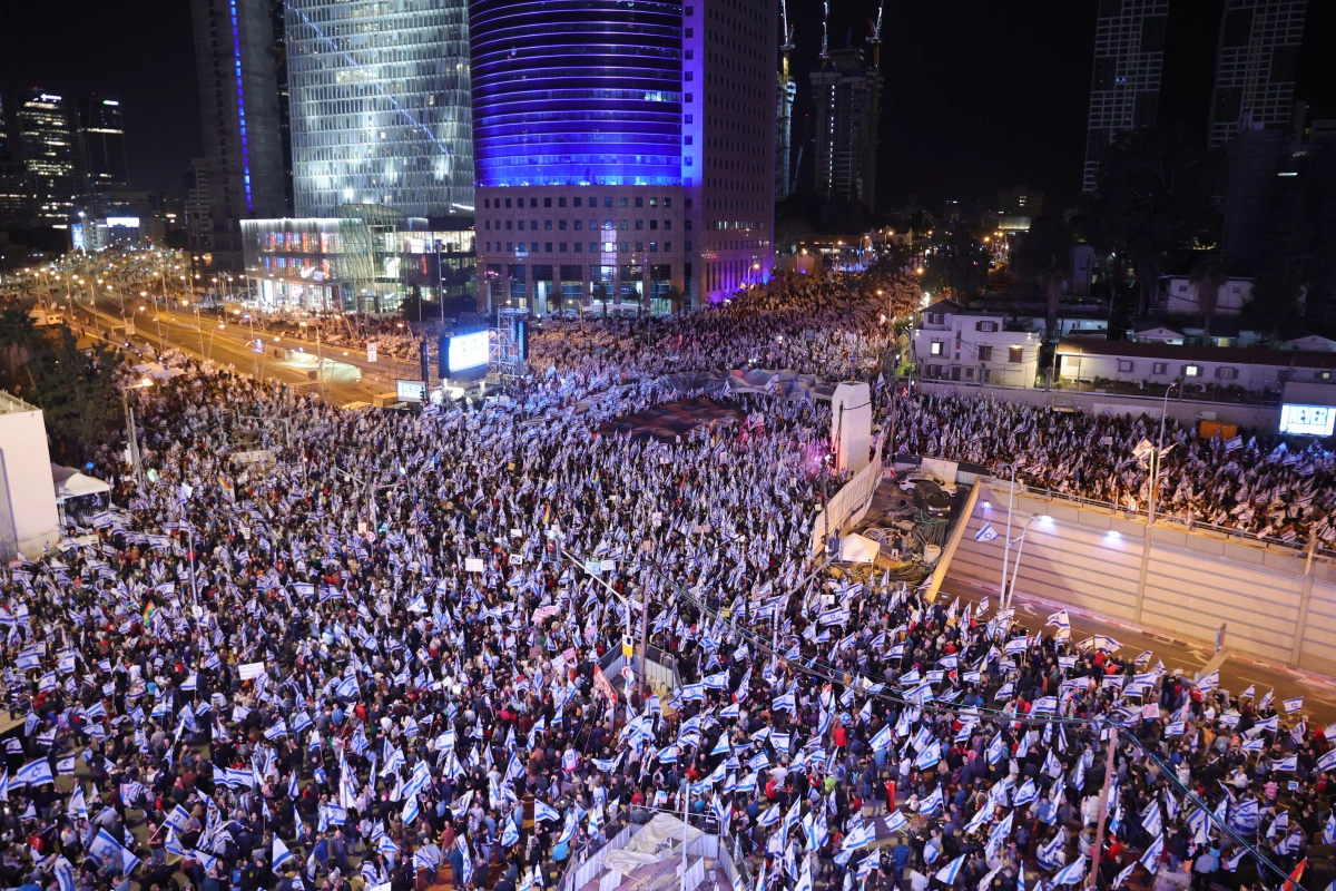 İsrail'de tartışmalı yargı reformuna yönelik protestolar devam ediyor. İsrail Başbakanı Binyamin Netanyahu, yargı reformuna karşı çıkan Savunma Bakanı Yoav Gallant'ı görevden almasının ardından halk yeniden sokaklara döküldü. Ellerinde İsrail bayrakları ile sokağa inen göstericiler, başkent Tel Aviv'deki Ayalon Otoyolu'nu trafiğe kapatarak ateş yaktı.