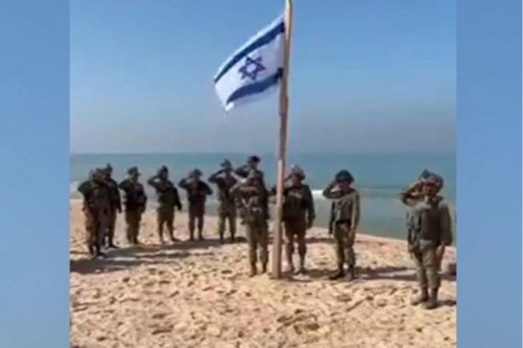 Söz konusu görüntüde, İsrail askerlerinin sahile İsrail bayrağı çekerek ulusal marşlarını okuduğu görülüyor