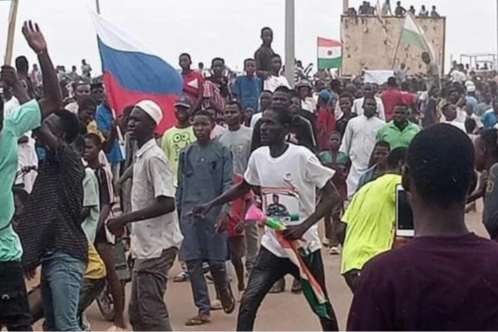 Niamey’in yakınlarındaki Fransız askeri üssünün çevresinde oluşturulan Batı Afrika bloğuna karşı çıkan protestocular, “Kahrolsun Fransa”, “Kahrolsun ECOWAS” sloganları atarak tepki gösterdi. Birçok protestocu Rus ve Nijer bayrakları sallarken, ülkenin yeni lideri General Abdourahmane Tchiani'ye desteklerini belirten sloganlar attı