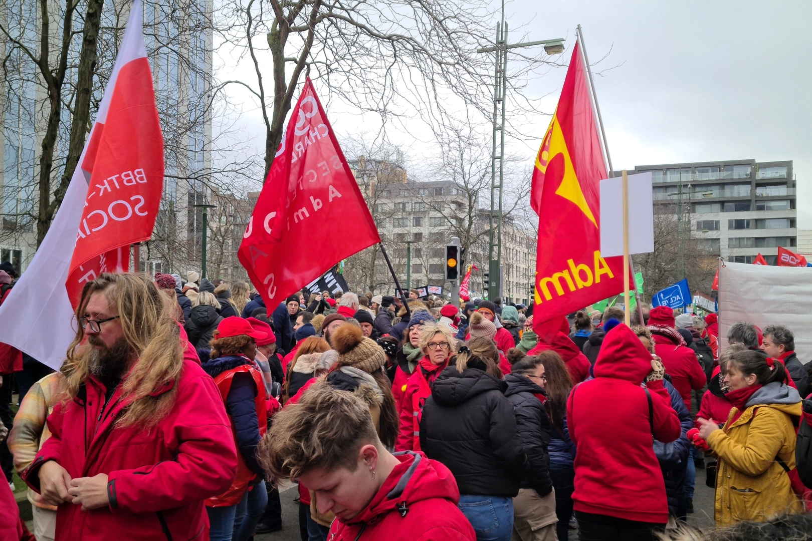Belçika'nın önde gelen sendikalarının ortak kararıyla düzenlenen protestoda, personel eksikliği nedeniyle artan iş yükünün giderilmesi için hükümete çağrıda bulunuldu.