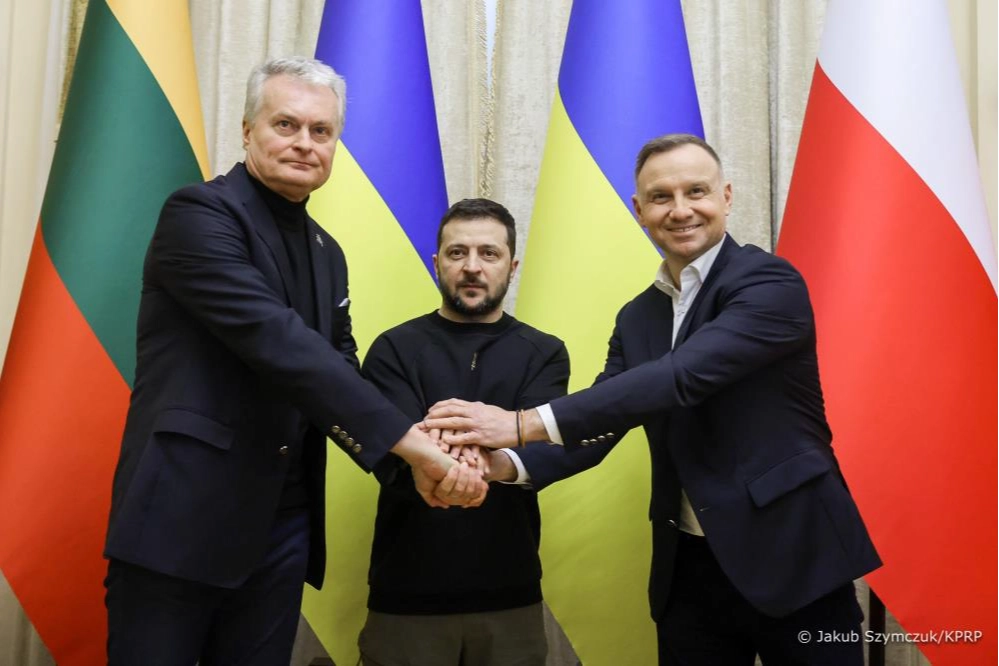 Ukrayna Devlet Başkanı Vladimir Zelenskiy, Polonya Cumhurbaşkanı Andrzej Duda ve Litvanya Devlet Başkanı Gitanas Nauseda, Lublin Üçgeni Zirvesi kapsamında Ukrayna'nın Lviv kentinde bir araya geldi. Zirvenin ardından ortak deklarasyon yayınlayan liderler, Ukrayna'nın egemenliğini ve toprak bütünlüğünü savunma hakkının devredilemez olduğuna vurgu yaparak, çatışmaların sona ermesinin ardından Ukrayna'nın yeniden inşasında işbirliği mesajı verdi.