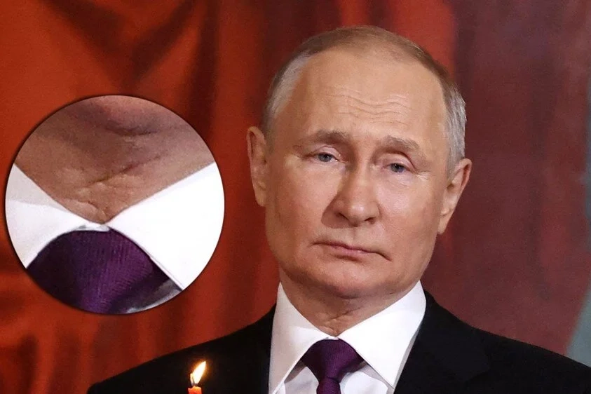Bu görüntü yakından incelendiğinde Putin'in boynunda "Z" harfine benzer bir yara izi görülüyor.