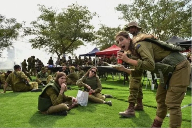 Gazze sınırına getirilen yüzlerce İsrail askerinin bekleyişini sürdürdüğü sınır hattındaki toplanma merkezi görüntülendi. Toplanma merkezinde bir araya gelen askerler için motivasyon yemeği de düzenlendi. İsrailli sivil gönüllüler, sınır hattındaki toplanma merkezine gelerek ordudaki rütbeli askerler ve yedek askerler için yemekler hazırladı.