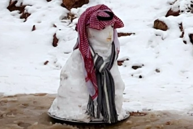Suudi Arabistan’da etkili olan kar yağışı sonrası halk sokaklarda karın keyfini çıkardı.