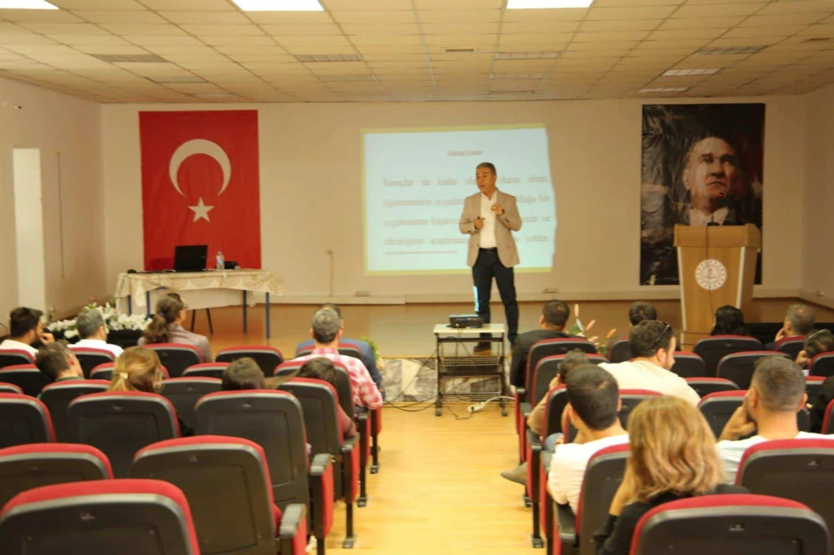 İl Milli Eğitim Müdürü Gürsel Ekmekci, “Bakanlığımız tarafından başlatılan matematik seferliği ile öğrencileri sadece sınava değil hayata hazırlamayı ilke edindiğimiz eğitim öğretim faaliyetlerimizde öğretmenlerimiz için düzenlenen bu tarz seminerleri oldukça önemsiyor, bu seminerlerin faydasına da fazlasıyla inanıyorum. Bilgilerimizi yenilediğimiz, yeni yöntem ve teknikler öğrenip beyin fırtınaları yapabildiğimiz her türlü eğitimin öğretmenlerimizin mesleki başarısını artıracağı konusunda hepimiz hemfikiriz sanıyorum. Bunun da öğrencilerimizin akademik ve sosyal becerilerine olumlu yansıyacağı hepimizin bildiği bir gerçek” dedi.