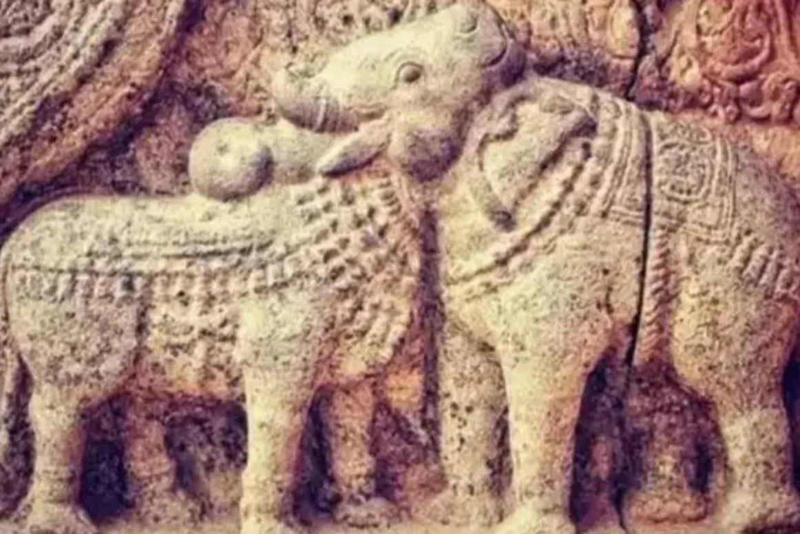 12. yüzyıla ait Dravidian mimarisine ait olan heykelde boğa ve fil yer alıyor