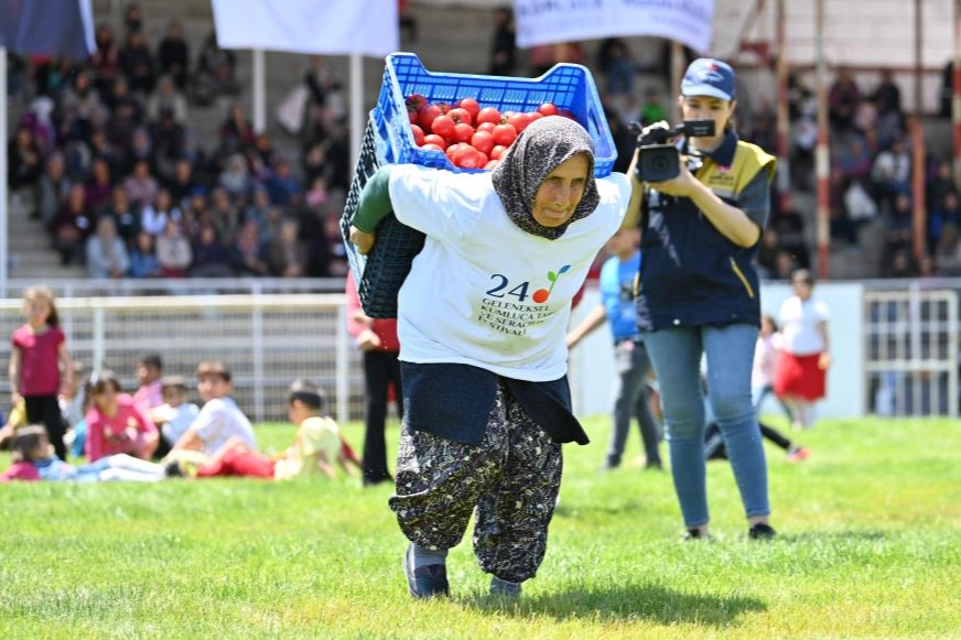 Antalya'da bu yıl 24’üncüsü yapılmakta olan Tarım ve Seracılık Festivali etkinlikleri kapsamında yapılan “Kadınlar Matinesi” özel etkinliğinde kadınlar arasında yapılan yarışmalar renkli görüntülere sahne oldu. Sırtlandıkları domates kasalarıyla 40 metrelik parkuru tamamlaya çalışan, halat çekme ve çuvalla koşma yarışmalarında kıyasıya mücadele eden kadınlar, domates yeme yarışmasında 3 dakikada 1 kilogram 500 gramın üzerinde domatesi yemeyi başardı. Kumluca ilçesinde yapılan ve yarışmaların yapıldığı stada sadece kadınların alındığı etkinlikte, kadınlar arasında domates kasası taşıma yarışması, halat çekme yarışması, domates yeme yarışması ve çuvalla yürüme yarışmaları gerçekleştirildi. Yarışmalara katılan kadınlar takım halinde ve bireysel olarak rakiplerini mağlup etmek için birbirleriyle kıyasıya mücadele etti. 12 yarışmacının katıldığı domates kasası taşıma yarışmasında 40 metre uzaklığa 3 dakika içerisinde 12 domates kasası taşıyan Hasret Cengiz birinci, 11 kasa taşıyan Hatice Işık ikinci ve 10 kasa taşıyan Ela Karakaya ise üçüncü oldu. 9 yarışmacının katıldığı domates yeme yarışmasında ise 3 dakika içerisinde bir kilo 550 gram domates yiyen Emine Uysal birinci, bir kilo 26 gram domates yiyen Dudu Yılmaz ikinci, 990 gram domates yiyen Ela Karakaya ise üçüncü oldu. 12 yarışmacının katıldığı çuvalla yürüme yarışmasında yürüme parkurunu tamamlayan Tansu Eryılmaz birinci, Zehra Akdağ ikinci ve Hatice Işık üçüncü oldu. 8 takımın katıldığı ve yarışmacıların halat çekme mücadelesinde yerlerde sürüklendiği yarışmada ise Kumluca Belediyesi Takımı, rakibi Fırtınalar Takımı'nı mağlup ederek yarışmanın birincisi oldu. Yarışma sonunca dereceye giren yarışmacılara Kumluca Belediye Başkanı Mustafa Köleoğlu, eşi Nurgül Köleoğlu ve Kumluca Kaymakamı Tekin Erdemir’in eşi Havva Erdemir tarafından çeşitli hediyeler verildi.