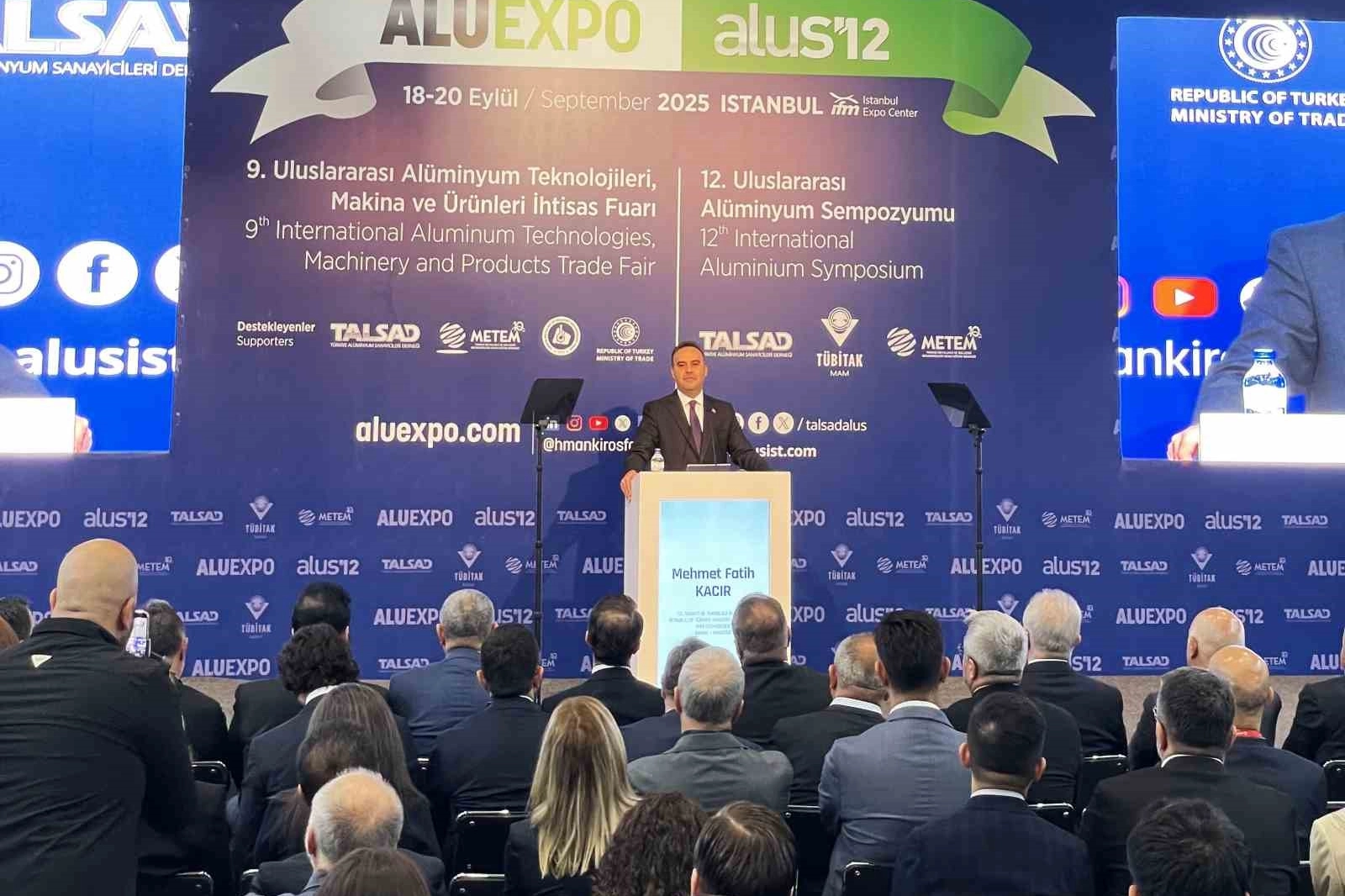 Yıllık 500 bin ton üretim ve 3 milyon ton işleme kapasitesine sahip Türk alüminyum sektörünün gerek kapasitesiyle gerekse de ürün kalitesiyle bugün küresel tedarik zincirlerinde önemli bir konuma sahip olduğunu kaydeden Bakan Kacır, şöyle devam etti: "Dünyanın 14’üncü büyük alüminyum ürünleri ihracatçısıyız. Alüminyum çubuk ve profil ihracatında dünyada üçüncü, Avrupa’da ikinci sıradayız. Küresel şoklara rağmen sektörümüzün ilk 7 aylık ihracatı geçen yıla göre yüzde 7,7 artarak, 3,2 milyar dolara ulaştı. Bu artış Ağustos ayını da dahil ettiğimizde yüzde 10’a yaklaştı. İhracatımızın miktarıyla birlikte katma değeri de artarak, ton başına 4 bin 500 dolara yükseldi."