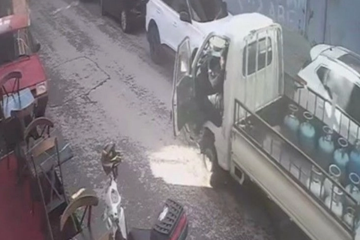 Muş'ta park halindeyken aniden hareket eden tüp yüklü kamyonet, 13 yaşındaki Yusuf isimli çocuğun dikkati sayesinde durduruldu.