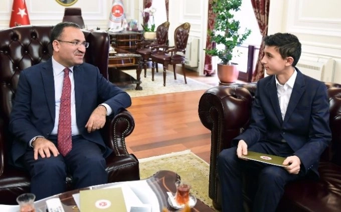 Adalet Bakanı Bekir Bozdağ, Temel Eğitimden Ortaöğretime Geçiş (TEOG) sınavında Türkiye birincisi olan ortaokul öğrencisi Yusuf Enes Şahingöz’ü makamında ağırlayarak tebrik etti.Bakan Bozdağ, TEOG sınavında 120 sorunun tamamını çözerek Türkiye birincileri arasında yer alan Yozgat Boğazlıyan İMKB Şükran Ortaokulu öğrencisi Yusuf Enes Şahingöz’ü bakanlıktaki makamında kabul etti.Bozdağ, Yusuf Enes’in hem Boğazlıyan’ın hem de Yozgat’ın gururu olduğunu belirterek, "Yusuf Enes’i tebrik ediyorum. Başarılarının devamını diliyorum. Bu başarıda büyük katkısı olan,ailesini ve öğretmenlerini de kutluyorum. Yozgat’ta eğitim alanında attığımız adımların meyvelerini topladığımız için de büyük memnuniyet duyuyorum. Yozgat, 2002 yılından bugüne kadar eğitim alanında yapılan yatırımlar ile adeta bir eğitim üssü haline gelmiştir. Yozgat’ın evlatları daha büyük başarılara imza atacaktır, buna yürekten inanıyorum" dedi.Adalet Bakanı Bozdağ’a teşekkür eden Yunus Enes Şahingöz ise "Başarımı çok çalışmaya borçluyum. Bu başarımda büyük emeği olan öncelikle aileme, öğretmenlerim ve arkadaşlarımdır, hepsine ayrı ayrı teşekkür ediyorum" şeklinde konuştu.Bakan Bozdağ’ın kabulünde Boğazlıyan Belediye Başkanı Hamdi Erdal ve babası Ali Şahingöz de hazır bulundu.