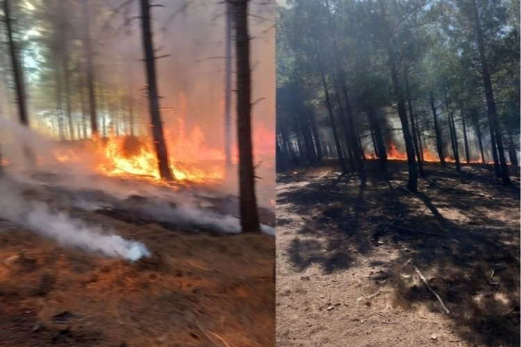 Yangına 10 arazöz, 6 su tankı ile karadan müdahale edilirken, havadan da müdahale sürüyor.
