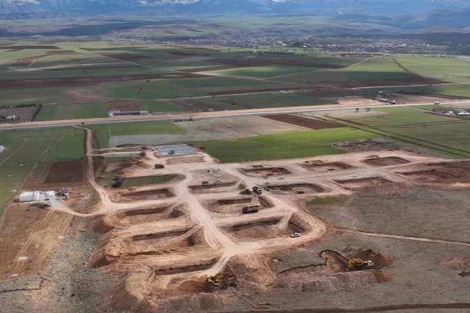 6 Şubat'ta meydana gelen iki büyük depremin ardından Kahramanmaraş Afşin'de yaralar sarılmaya devam ederken, kalıcı konutlarla ilgili de çalışmalar aralıksız sürüyor. Kırsal mahallelerle birlikte 6 bin konutun yapılması planlanan ilçede Afşin Belediyesinin 2021 yılında Türkiye tarihinin dördüncü en büyük 18. imar uygulamasını tamamlaması ve Hüyüklü ile Gerger mahallelerinde arazilerin TOKİ’ye devredilmesiyle 2 bin 229 konutun temeli atıldı. Çevre, Şehircilik ve İklim Değişikliği Bakanlığı koordinesinde TOKİ tarafından 180 gün içerisinde konutların tamamlanması planlanan bölgedeki son durum havadan da görüntülendi.