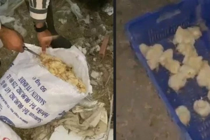 Bölgeden geçenler, yol kenarında, civciv sesi gelen çuvallar olduğunu fark etti.