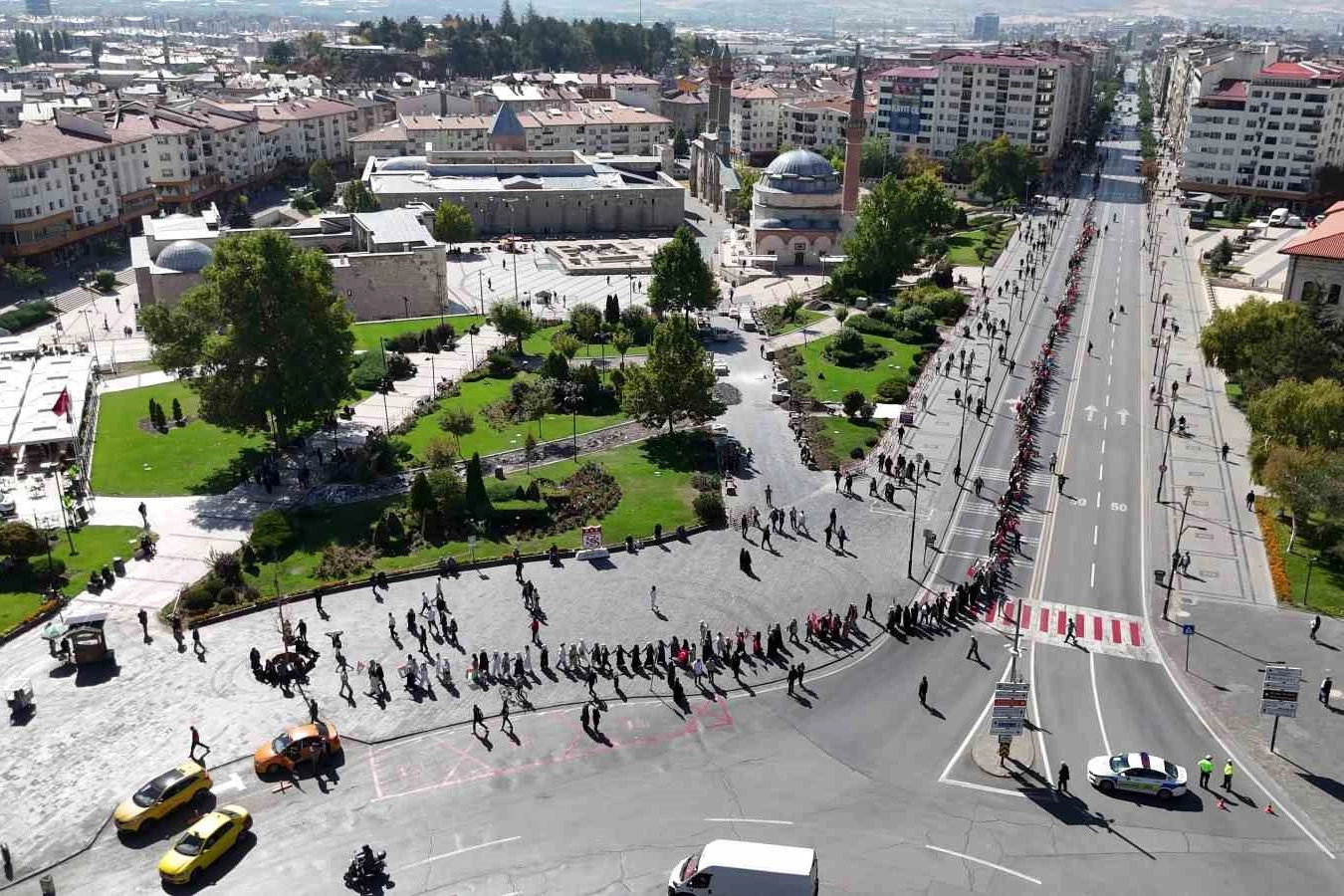 AK Parti Kadın Kolları tarafından İsrail’in Filistin’e saldırılarının ikinci yıldönümünü protesto etmek için 81 ilde eş zamanlı düzenlenen ‘Gazze İçin Sessiz Çığlık’ yürüyüşü, Sivas’ta da gerçekleştirildi. Sivas Devlet Hastanesi önünde bir araya gelen kadınlar tek sıra halinde el ele tutuşarak yaklaşık 1 kilometrelik zincir oluşturdu. Katılımcılar ellerinde Türk bayrağı ve Filistin bayrakları ile ‘Barış kadınla mümkün’ yazılı pankartlar taşıdı. Kent meydanında son bulan yürüyüşte, basın açıklaması yapan AK Parti Kadın Kolları Başkanı Ayşegül Hatip, Gazze’de yaşanan saldırıların son bulması çağrısında bulundu. Türkiye Cumhuriyetinin Cumhurbaşkanı Recep Tayip Erdoğan kararlılığıyla zulme sessiz kalmadığını dile getiren Hatip, "Bugün kadınlar olarak Gazze’nin sessiz çığlığına ses olmak için el ele verdiğimizi tüm dünyaya göstermek adına meydanlardayız. Bugün 81 ilde kurduğumuz bu zincir, Gazze’de evlatlarını kaybeden anne, babaların, öksüz ve yetim bırakılan çocukların zinciridir. Bu zulmü görmezden gelen herkese soruyorum, kalbiniz nerede? Bizler İstanbul’dan, Hakkâri’den, Trabzon’dan, Erzurum’dan ve Türkiye’nin 81 ilinden dünyanın dört bir yanındaki kadınlara, kız kardeşlerimize sesleniyoruz, ‘Barış kadınla mümkün’. Barışçıl bir şekilde yola çıkan ve uluslararası sularda haydut İsrail’in hukuksuz müdahalesine uğrayan Küresel Sumud Filosu’nu dünya öylece seyretti. Hamdolsun, Türkiye, Cumhurbaşkanımız Sayın Recep Tayyip Erdoğan’ın kararlılığıyla bu adaletsizlik karşısında da sessiz kalmadı. Sadece kendi ülkesinin vatandaşlarını değil, 13 ülkeden 101 vicdan sahibi gönüllünün de ülkelerine güvenle dönmelerini sağladı" diye konuştu.