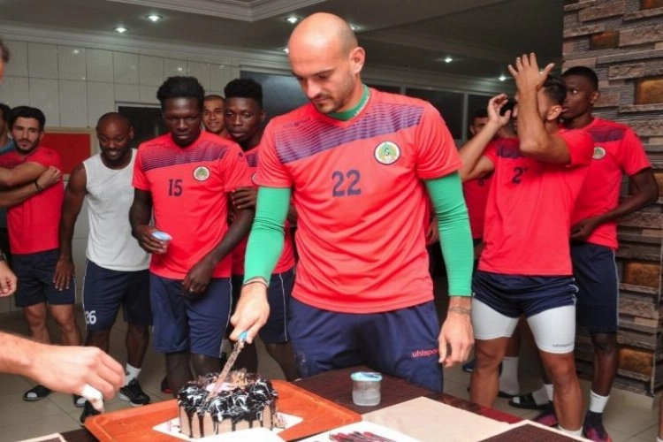 Alanyaspor’un Fransız kalecisi Remy Riou, sürpriz bir kutlamayla yeni yaşına girdi.Alanyaspor’da görev yapan kaleci Remy Riou, antrenman öncesi renkli bir sürprizle karşılaştı. 30 yaşına giren tecrübeli kaleci için antrenman öncesi doğum günü kutlaması yapıldı. Remy Riou, kendisi için hazırlanan doğum günü pastasının mumlarını takım arkadaşlarının alkışları eşliğinde söndürdü. Pastanın ilk dilimini ise Riou’ya kaptan Haydar Yılmaz yedirdi. Daha sonra teknik ekip ve futbolcular Remy Riou’nun yeni yaşını tebrik etti.