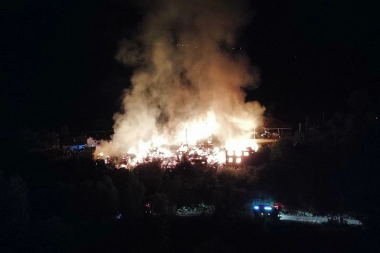Toplamda 12 yapının alevlere teslim olduğu yangın, dronla havadan görüntülendi. Köyün havadan çekilen görüntülerinde alevlerin geceyi aydınlattığı görüldü.