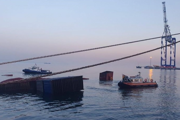 Bir bölümü dolu olan konteynerlerin düştüğü bölgede denizde herhangi bir çevre kirliliği oluşmadığı belirlendi.