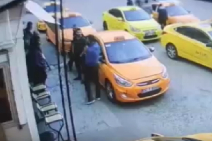 Güvenlik kamerasına yansıyan olayda taksi şoförü Mert D. ve onu ziyarete gelen babası Refik D. tüfekten çıkan saçmalarla yaralanırken, panikle kaçan taksi şoförleri Ahmet E. ve Taner Ş. de düşerek yaralandı.
