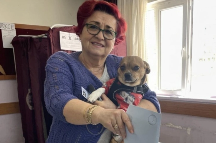 Köpeğini evde bırakmak istemediğini anlatan Tüzer, "Oyumuzu kullandık. Çaki'yi çok seviyorum, ayrılmak istemedim. İlk kez oy kullanmaya geldi. Güzel bir anı." dedi.