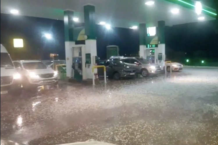 Antalya'nın Manavgat ve Serik ilçelerinde gece saatlerinde aniden bastıran dolu etkili oldu. Bilye büyüklüğündeki dolu yağışına yolda yakalanan vatandaşlar araçlarının zarar görmesini engellemek içi yakındaki akaryakıt istasyonlarına girerek yağışın bitmesini bekledi.