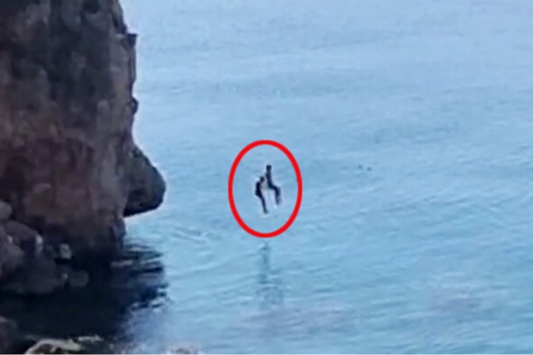 Muratpaşa ilçesinden Konyaaltı Sahili'ne gidilen Varyant bölgesindeki falezlerde 2 arkadaşın el ele tutuşup yaklaşık 25 metre yükseklikten denize atlayışları çevredekilere korku dolu anlar yaşattı.