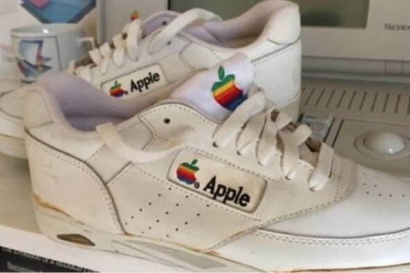 BBC'nin haberine göre, Müzayede Evi, Apple'ın gökkuşağı renkli eski logosunun olduğu beyaz renkli deri ayakkabıların hiç kullanılmadığını ancak bazı kısımlarında sararmalar olduğunu açıkladı.