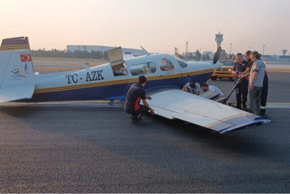Mooney M20J tipi TC-AZK kuyruk tescilli uçak İstanbul Atatürk Havalimanı'na inişinin ardından kırıma uğradı.