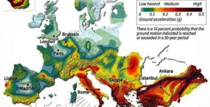 Bilim insanları Avrupa'nın deprem riski haritasını çıkardı. Haritada, sismik olarak en riskli ülke Türkiye olarak gösterildi. Sıralamada Türkiye’yi, Yunanistan ve İtalya izliyor. Deprem uzmanlarının çıkardığı risk haritasında Türkiye en büyük fay hattı ile ‘en tehlikeli ülke’ olarak gösterildi. Belirlemelere göre, risk sıralamasında Türkiye’yi Yunanistan ve İtalya izliyor. Fransa’nın ise Alp ve Pirene dağları altında sıkışan fay hatlarına dikkat çekiliyor. Portekiz’in başkenti ve en büyük şehri olan Lizbon da ülkedeki en riskli deprem alanında yer alıyor. (