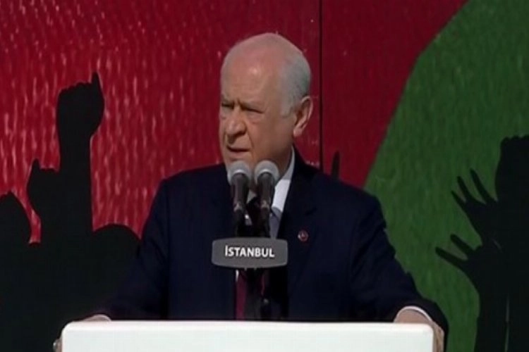 MHP Genel Başkanı Devlet Bahçeli İstanbul Yenikapı'da düzenlenen Kudüs mitinginde konuşma yaptı. Bahçeli'nin açıklamalarından öne çıkanlar şöyle: "Gazze'deki masumlar için ayaktayız. Tarihi Türk ve İslam şehirlerini, buralarda nefes alan kardeşlerimizi en halisane duygularımla kucaklıyorum. Bilsinler ki yalnız değiller, çaresiz değiller, sahipsiz değiller. Kudüs eziyet ve işkence altında batılın kapanıdır. Kudüs'te haksızlık, hukuksuzluk, adaletsizlik hakimdir. Zulüm karşısında sessiz kalan dilsiz şeytandır. Zulme seyirci olmayacağız. Dilsiz şeytanlığı ayaklarımızın altına alıp ezip geçeceğiz. İsrail'in başkenti demekle bu tartı bu sikleti çekmez. ABD yangına körükle gitmiştir. ABD Başkanı bu hakkı nereden almıştır.