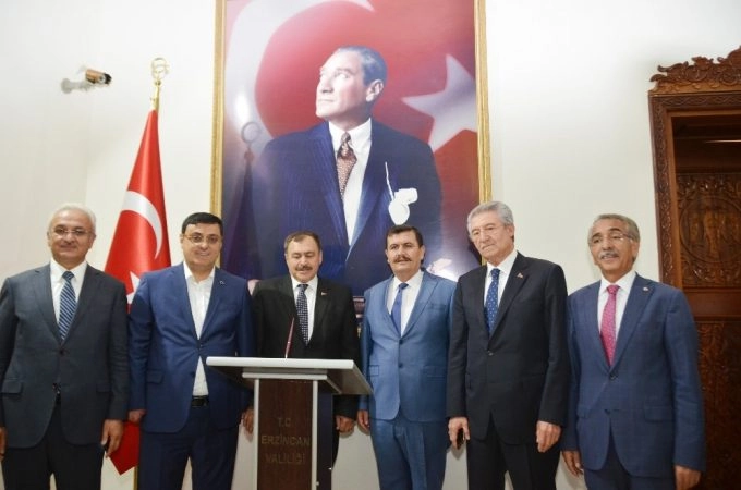 Erzincan’a toplu temel atma ve açılış törenine katılmak üzere gelen Orman ve Su İşleri Bakanı Veysel Eroğlu, Erzincanlılara birçok müjde verdi. Erzincan’ı şifalı bal üretim merkezi yapmak istediklerini belirten Eroğlu, "Paran yoksa gel kardeşim para, arazin yoksa ormandan size bal ormanı için yer vereceğiz. Kovanı yoksa kovan vereceğiz. Arın yoksa arı vereceğiz. Hatta parası yok diyenlere yüzde 20’si hibe geri kalanı faizsiz destek vereceğiz. Baba, oğluna böyle imkan vermez" dedi.Erzincan havaalanında Erzincan Valisi Ali Arslantaş, AK Parti Erzincan Milletvekilleri Sebahattin Karakelle ve Serkan Bayram, Belediye Başkanı Cemalettin Başsoy ile kamu kurum müdürleri tarafından karşılanan Bakan Eroğlu, Erzincan Valiliğini ziyaret etti.Gerçekleştirilen ziyarette Valilik şeref defterini imzalayan Bakan Eroğlu, daha sonra Valilik makamına geçerek açıklamalarda bulundu.Bakan Eroğlu burada yaptığı konuşmada, kentte 12 tesisin temelini atacağını belirterek, bu tesislerin toplam maliyetinin yaklaşık 88 milyon lira olduğunu ifade etti.Erzincan’ın Refahiye ilçesindeki Dumanlı Tabiat Parkı konusunda çalışmaların yapıldığı belirten Bakan Eroğlu, konuşmasında, “Başbakanımız Binali Yıldırım’ın çok önem verdiği bir husustur. Dumanlı Tabiat Parkı’nın ilanı bugüne yetiştirildi. Şimdi burada bunu imzalamanın mutluluğunu yaşıyorum. Erzincan’ı şifalı bal üretim merkezi yapmak istiyoruz. O bakımdan buradaki vatandaşlara teklif ediyoruz. Paran yoksa gel kardeşim para, arazin yoksa ormandan size bal ormanı için yer vereceğiz. Kovanı yoksa kovan vereceğiz. Arın yoksa arı vereceğiz. Hatta parası yok diyenlere yüzde 20’si hibe geri kalanı faizsiz destek vereceğiz. Baba, oğluna böyle imkan vermez" ifadelerini kullandı.Yapılan konuşmanın ardından Eroğlu’nun imzaladığı metin ile Dumanlı Tabiat Parkı, Türkiye’nin 219. tabiat parkı olarak kayıtlara geçti.Bakan Eroğlu ve beraberindekiler daha sonra 3. Ordu Komutanlığını ve Erzincan Belediyesini ziyaret edip yapılan çalışmaları hakkında bilgi aldı.Bakan Eroğlu daha sonra Erzincan Müftülüğü Konferans Salonu’nda tesis açılışları ve temel atma törenine katıldı.Orman ve Su İşleri Bakanı Prof. Dr. Veysel Eroğlu, Müftülük Konferans Salonu’nda düzenlenen toplu temel atma merasiminde ise DSİ tarafından inşa edilecek Merkez Davarlı Barajı, Kemah Karadağ Barajı, Kemah Doğanbeyli Barajı, Refahiye Yurtbaşı Göleti, Tercan Çatakdere Göleti, Kemah Tuzlaköy Barajı ve baraj sulaması ile 4 adet taşkın koruma tesisinin temelini attı. Eroğlu, aynı merasimde OGM tarafından ağaçlandırma ve ormancılık projesi adı altında yapılacak 1 adet tesisin de temelini attı.Erzincan’da 5 aileye gelir getirici tür ve 10 aileye Orköy sertifikası veren Prof. Dr. Eroğlu zerdali, ceviz, dut, atkestanesi, sarıçam türlerinden oluşan toplam 2 bin 500 adet fidanı da vatandaşlara ücretsiz olarak dağıttı.