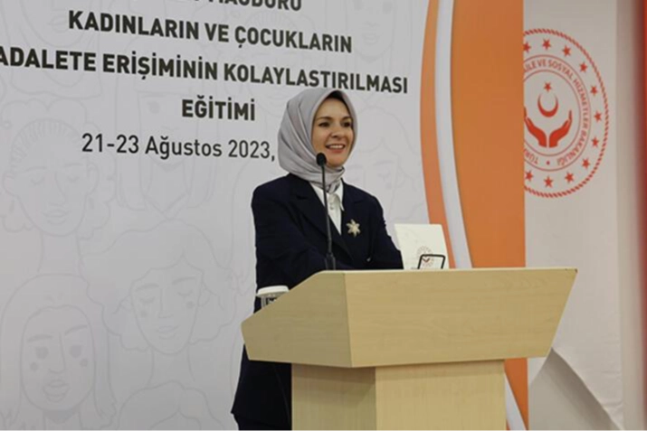 Aile ve Sosyal Hizmetler Bakanlığı ile UNICEF ve UN Women Türkiye iş birliğiyle gerçekleşen 'Şiddet Mağduru Kadınların ve Çocukların Adalete Erişiminin Kolaylaştırılması Eğitim' programının kapanış toplantısı Aile ve Sosyal Hizmetler Bakanı Mahinur Özdemir Göktaş ve UNICEF Türkiye Temsilcisi Paolo Marchi'nin katılımıyla gerçekleşti. Programda yaptığı konuşmada Bakan Göktaş, kadına yönelik şiddetin aileyi ve toplumu sarstığını çok net olarak gördüklerini belirterek, "Şiddet, insanın onurunu ve adalet duygusunu zedeliyor. Bireyden başlayıp halka halka yayılan şiddet sağlıklı bir sosyal hayatı imkansız hale getiriyor. Bizim Türkiye olarak, Aile ve Sosyal Hizmetler Bakanlığı olarak temel ilkemiz kadına yönelik şiddete karşı sıfır toleranstır" ifadelerini kullandı.