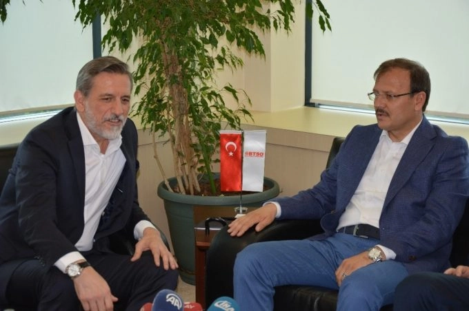 Bursa Ticaret ve Sanayi Odasını (BTSO) ziyaret eden Başbakan Yardımcısı Hakan Çavuşoğlu, BTSO’nun önümüzdeki dönemde Türkiye’ye katma değer üretecek projelere imza atacağını söyledi.Bursa Ticaret ve Sanayi Odası (BTSO) Yönetim Kurulu Başkanı İbrahim Burkay, Başbakan Yardımcısı Hakan Çavuşoğlu’nu Bursa’da ağırladı. Çavuşoğlu, “BTSO sadece Bursa için değil bütün Türkiye için önemli bir lokomotif görevini görüyor. Son dönemdeki projeler ve uygulamalar, Türkiye’deki diğer odalara ve STK’larına örnek oluyor. Bursa hepimizin ortak paydasıdır. Bursa’nın son 15 yıllık dönemde yatırımlarla çehresi değişti. Marka şehir olarak göz kamaştırıyor. Sadece sanayii ile değil, kültürü ve turizmiyle de ön plana çıkmayı başardı. Geçmişten aldığı inşa edici rolünü sürdürmesi gerekiyor. Bu, sadece bizim uhdemizdeki bir konu değildir. Siyasi, sivil ve kamu unsurlarıyla beraber Bursa’yı büyüteceğiz ki Türkiye de büyüme devam edecek” dedi.BTSO’nun yaptığı projeleri yakından takip ettiğini ifade eden Çavuşoğlu, “Önümüzdeki dönemde gıda kongresi düzenlenecek. Sanatoryum’un temeli atılacak. Gökmen Uzay Havacılık projesi hayata geçecek. Bunlar Türkiye’ye katma değer üretecek projelerdir. Bunların haricinde bölgesel ses getirecek TEKNOSAB projesi var. İlk etapta 25 milyar dolarlık yatırım ön görülüyor. 40 milyar dolar ihracat potansiyeliyle beraber şaha kalkacağımızı düşünüyorum. Bu projeler için Ankara’da üzerime düşen vazifeyi yerine getireceğim” diye konuştu.BTSO olarak Türkiye’nin 2023, 2053 ve 2071 hedeflerinde vizyon projelerle katkı sağlamaya çalıştıklarını belirten İbrahim Burkay ise, “İnşallah bu projelerin tamamına bu dönemde sizler de liderlik edeceksiniz. Bursa ve Türkiye ekonomisi önümüzdeki süreçte çok iyi yerlere gelecektir” şeklinde konuştu.Açıklamaların ardından toplantı basına kapalı olarak yapıldı.