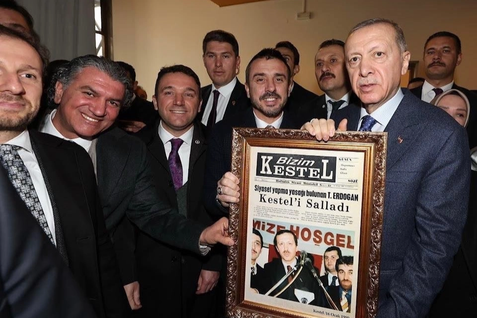 Cumhurbaşkanı Recep Tayyip Erdoğan’ı ziyaret eden Kestel Belediye Başkanı Önder Tanır, Erdoğan’ın 19 Ocak 1999 tarihinde Kestel ziyareti sırasında çekilen fotoğrafını ve günün gazete manşetinin yer aldığı tabloyu kendisine hediye etti.