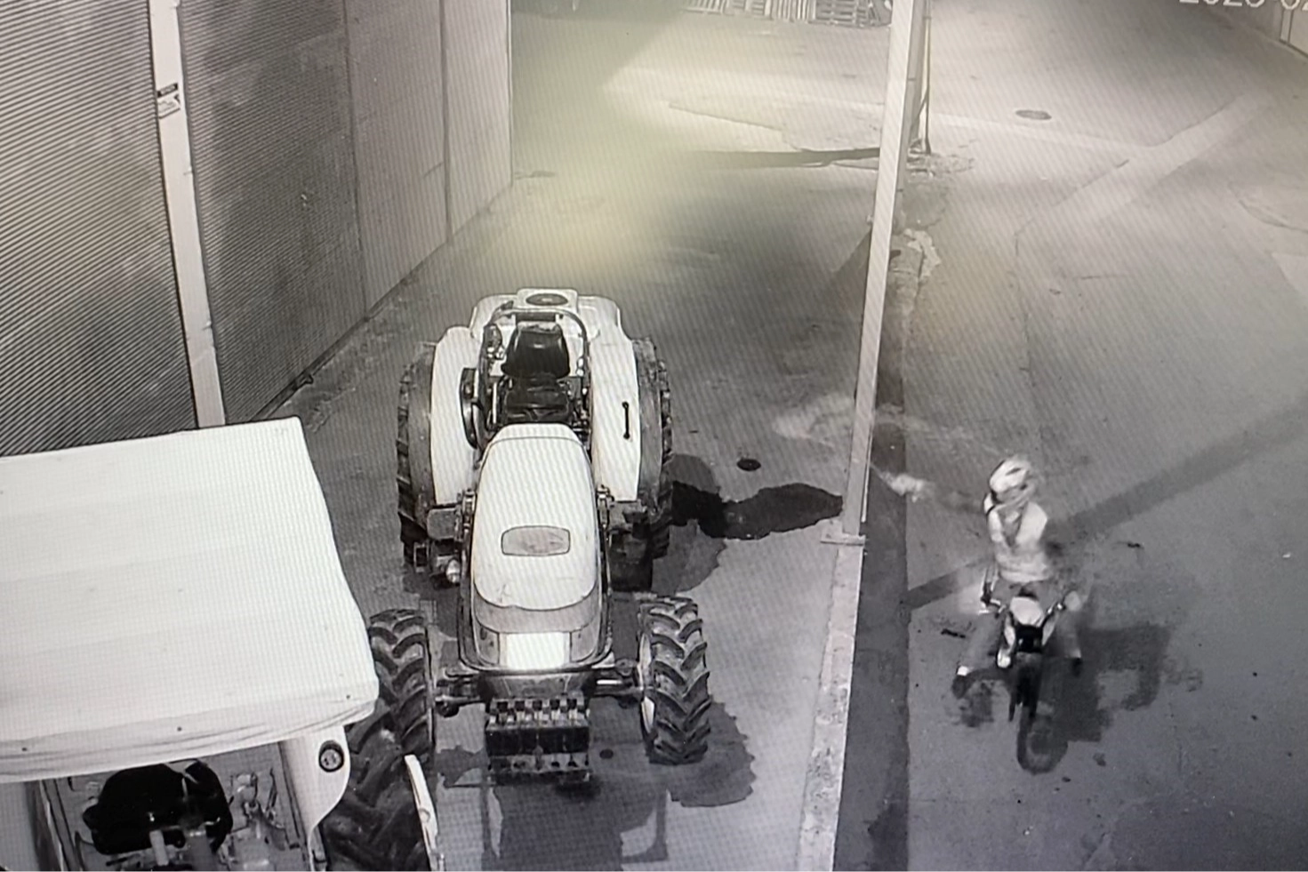 Olay anıysa güvenlik kameralarına anbean yansıdı. Motosikletiyle gelen şüpheli, elindeki şişeyle benzini traktöre doğru döktü. Bu sırada etrafa benzinin saçıldığı gözlenirken, şüphelinin ateşi yakmasıyla birlikte şüphelinin, kullandığı motosikletin ve traktörün alev aldığı görüldü.