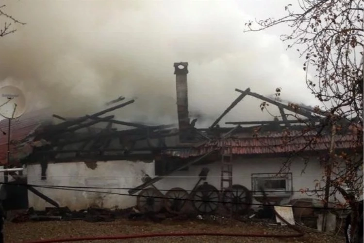 Rasim Evren'e ait evin balkonundaki çekyatın tutuşmasıyla çıkan yangında tek katlı ahşap ev yandı.