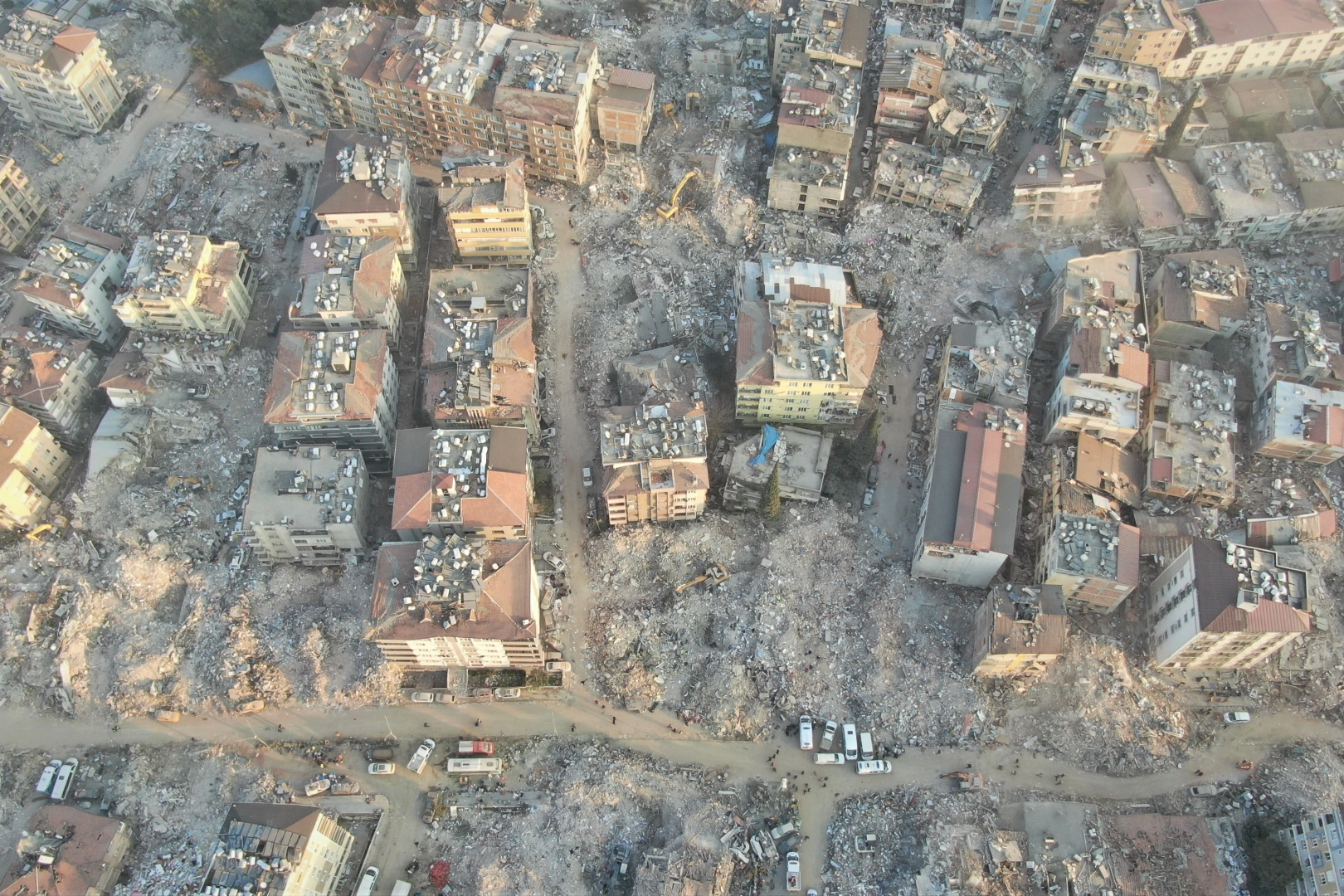Kahramanmaraş merkezli meydana gelen iki büyük depremin ardından arama kurtarma çalışmalarının devam ettiği Hatay'da ortaya çıkan korkunç yıkım dron ile görüntülendi. Deprem felaketinin 8'inci gününde Antakya'da çekilen dron görüntülerine, insanların ve ekiplerin enkaz çevresindeki kurtarma çalışmaları ve oluşan yoğunluk yansıdı. Bölgede arama kurtarma çalışmaları devam ederken, şehrin sokak ve caddelerinin enkaz alanına dönüştüğü görüldü. Öte yandan, arama kurtarma çalışmalarından dolayı harabeye dönen kentin üzerini toz tabakası kapladı.