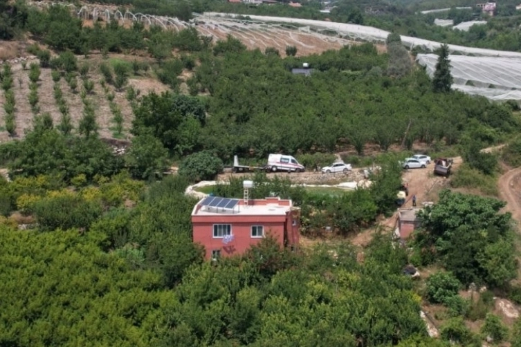 Katliamın yaşandığı bahçe evi ise drone ile görüntülendi.