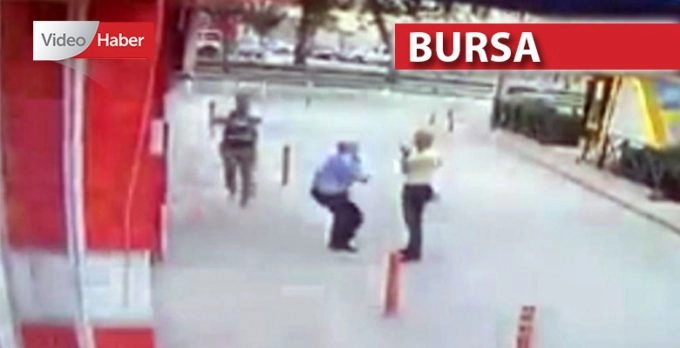 Bursa’da polis memurunun pompalı tüfekle şehit olma anı güvenlik kamerasına yansıdı. Dün akşam saatlerinde Gemlik ilçesinde, kaybettiği bir icra davasından dolayı Musa Güler (37) önce ofisinin önünde avukat Özgür Aksoy’u vurmuş, ardından adliye sarayında polis memuru İdris Büyükdönmez’i (48) şehit etmişti.