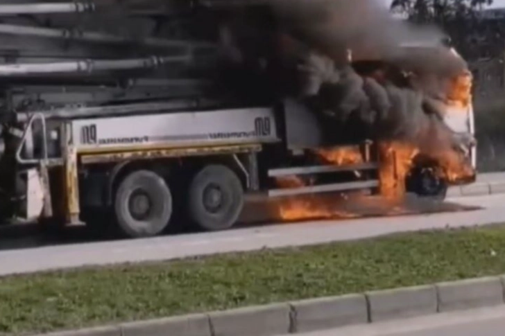Edinilen bilgiye göre, Biga ilçesinden Çan'a doğru seyir halinde olan Tarık Dönmez idaresindeki 34 ZL 3635 plakalı beton pompası aniden alev alarak yanmaya başladı.