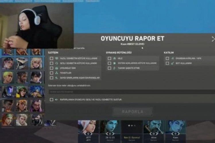 Şimdi de Türkiye'de çokça oynanan Valorant oyununda "Kaen#BEST" rumuzlu bir erkek oyuncu, Yağmur isimli genç kadına ağır küfürler edip öldürmekle tehdit etti. Erkek oyuncu "Bugün ölen karı gibi kafanı keserek öldürürüm" derken oyuncu Yağmur yayındaydı. Yağmur, oyuncuyu ifşa etti, video sosyal medyada gündem oldu.