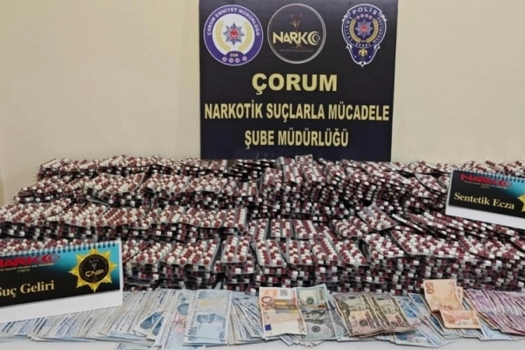 Narko timler tarafından Osmancık ilçesinde uyuşturucu madde satışının önlenmesine yönelik yapılan operasyonda, 21 bin adet sentetik ecza, 35 adet tabanca fişeği, 33 bin 200 TL, 300 dolar ve 50 euro para ele geçirildi.