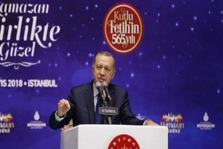 Cumhurbaşkanı Erdoğan, "İstanbul'un fethi bizim için ne kadar sevindirici, ne kadar iftihar verici bir hadiseyse birileri için de o derece bir büyük felaket günüdür. Biz bu şehrin sokaklarına 'Zulüm 1453'te başladı' diye yazanları unutmadık. Bizans askerlerinin kostümleriyle polisimizin, jandarmamızın karşısına dikilenleri unutmadık. 15 Temmuz'da tankları alkışlayanları, kontrollü darbe diyerek milletin zaferine gölge düşürmeye çalışanları unutmadık. Bayrağımıza tahammülü bulunmayanları, ezandan rahatsız olanları, pasaportundan utananları unutmadık. Hiç uzağa gitmeye gerek yok, 24 Haziran seçimleri sürecinde yaşadıklarımız bile tek başına bu gerçekleri göstermeye yeterlidir." dedi.