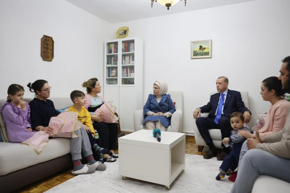 Cumhurbaşkanı Recep Tayyip Erdoğan, eşi Emine Erdoğan ile birlikte Ankara'da depremzede aileyi ziyaret etti.