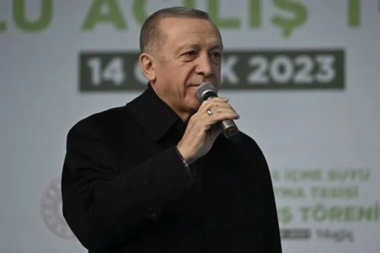 Cumhurbaşkanı Recep Tayyip Erdoğan, Muğla'da Menteşe Atatürk Bulvarı'nda Marmaris - Datça Yolu, Milas İçme Suyu Arıtma Tesisi ve Bodrum Devlet Hastanesi ile yapımı tamamlanan diğer projelerin toplu açılış töreninde açıklamalarda bulunuyor.