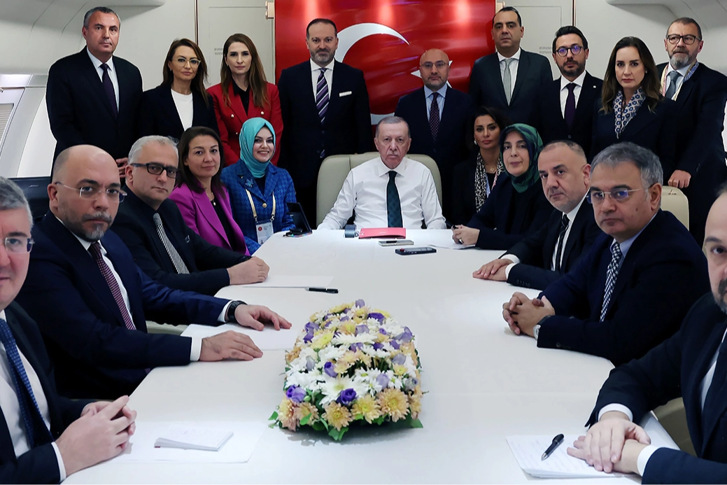 Erdoğan, Tataristan ziyareti dönüşünde uçakta gazetecilere açıklamalarda bulundu. Erdoğan, "Öncelikle TUSAŞ’ın Kahramankazan’daki yerleşkesine yapılan hain terör saldırısında şehit olan 5 kardeşimize Allah’tan rahmet, yaralılarımıza acil şifalar diliyorum. Türkiye’nin huzuru, güvenliği, savunması için çalışan TUSAŞ ailesine ve aziz milletimize ’geçmiş olsun’ diyorum. Alçak saldırıyı gerçekleştiren, biri kadın 2 terörist ölü olarak ele geçirilmiştir" dedi.