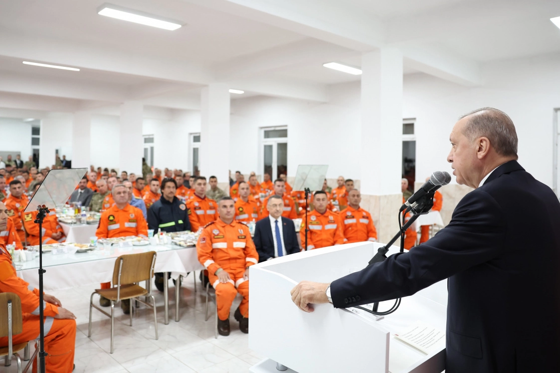 Enkaz kaldırma, yardım ve güvenlik çalışmalarında görev alan komutanından erine kadar tüm askerlerimize şahsım, ailem ve milletim adına şükranlarımı sunuyorum” açıklamasını yaptı. Türkiye coğrafyasının kendisine sunduğu pek çok güzellik, zenginlik, mekan ve fırsat yanında tabi ve beşeri pek çok tehditle karşı karşıya olan bir ülke olduğuna dikkat çeken Cumhurbaşkanı Erdoğan, tabii tehditlerinin kimi zaman küçük çaplı kimi zaman 6 Şubat'ta olduğu gibi çok büyük yıkım ve ölüm getiren sonuçlarının yaşandığını ifade etti.